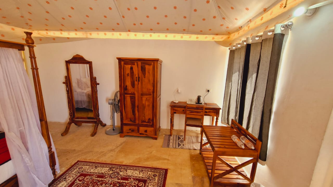 Book our Spacious and Comfortable Super Deluxe Swiss Tents for your stay. Well equipped with all necessary facilities.
