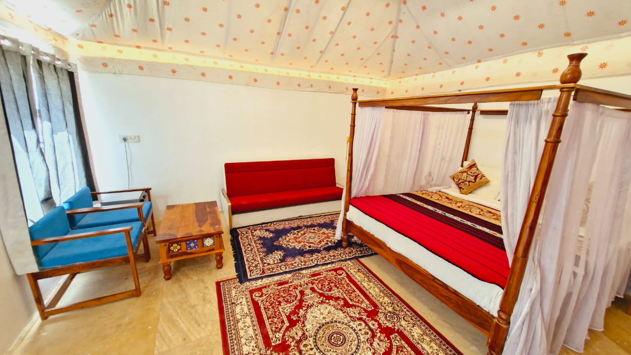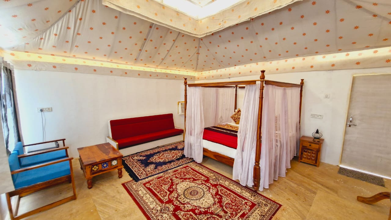 Our Deluxe Rooms offer a perfect blend of comfort and simplicity, providing a cozy retreat for travelers. These well-appointed rooms feature essential amenities, including comfortable bedding, air conditioning, and modern bathrooms, ensuring a restful stay after exploring the golden city of Jaisalmer. Enjoy the serene ambiance and thoughtful touches designed to make your stay memorable and relaxing.